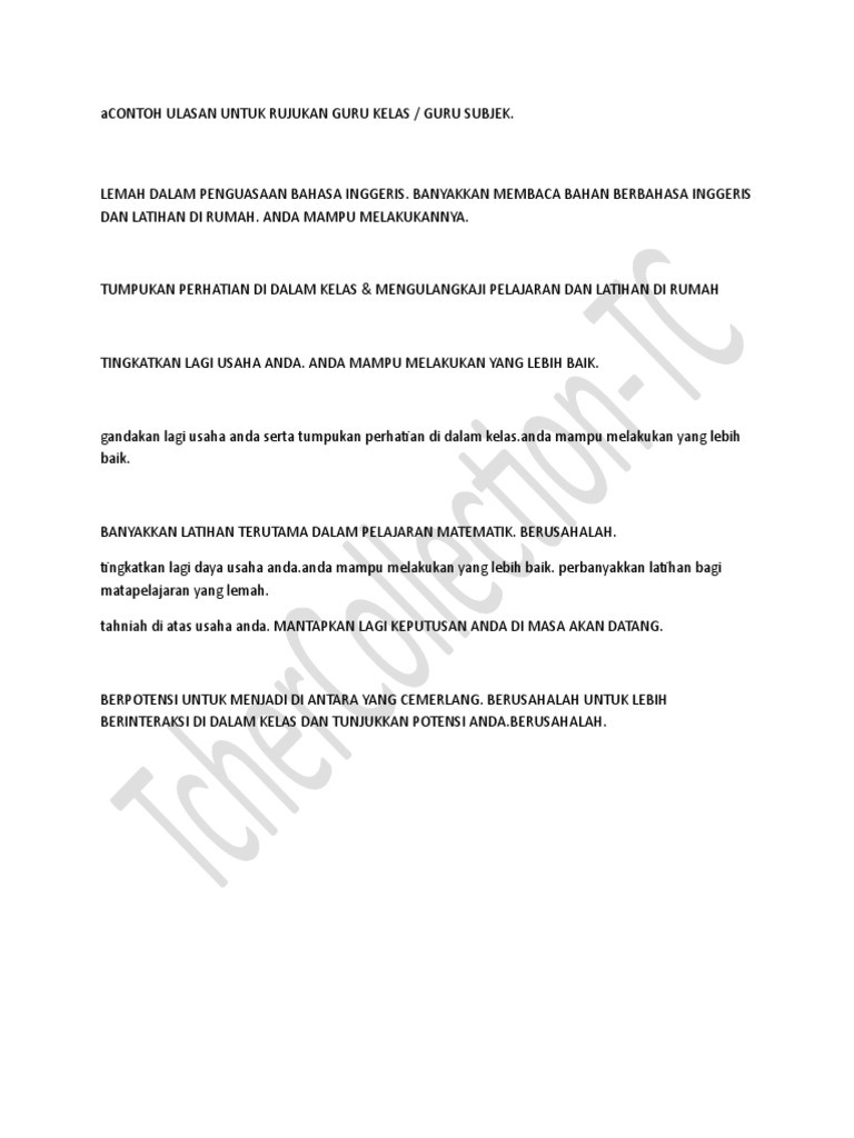 Download ulasan guru kelas pdf. Tingkatkan usaha anda Bertanggungjawab dalam melaksanakan tugasan yang diberikan. Lemah dalam penguasaan bahasa inggeris.