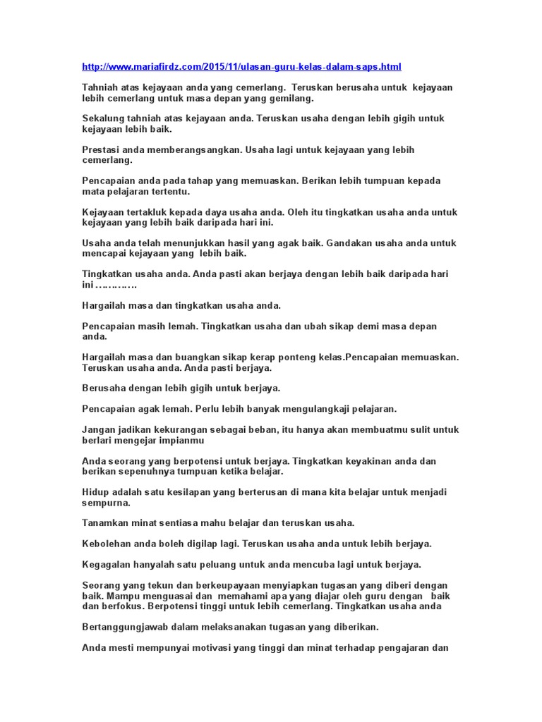 Setiap kali guru mengisi markah dalam sistem saps guru kelas perlu memberi ulasan. Contoh Ulasan Guru Kelas Dalam Saps Dan Buku Pelaporan. Tak lupa kami haturkan banyak terima kasih karena sudah.